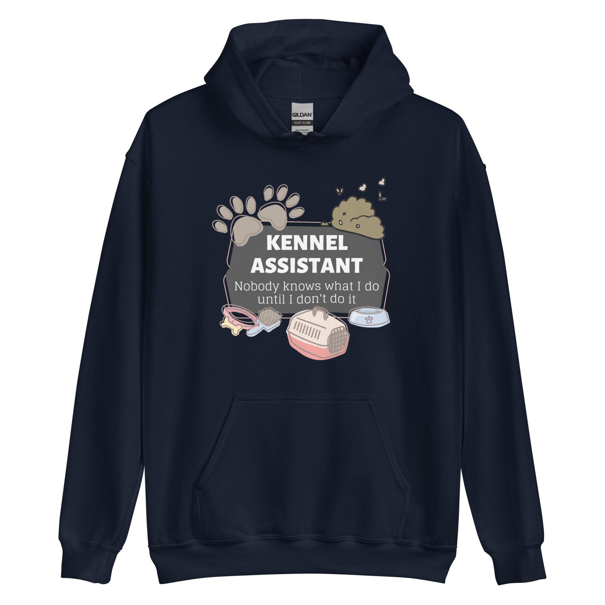 Show how proud you are to be a Kennel Assistant with this "Kennel Assistant, nobody knows what I do until I don't do it" Unisex Hoodie design. Wear this unisex hoodie at your place of work and entertain your colleagues with some vet humor. Perfect gift for Employee Appreciation Day, Vet Tech Week, and World Veterinary Day for your Veterinary Staff. This will be your comfiest piece to wear after your scrubs! Unique design for everyone in veterinary medicine who loves their profession! This is perfect for birthdays, Mother's Day, Father's Day, Christmas, or any other special occasion. Find other cool t-shirts for veterinarians, vet techs, veterinary students, receptionists, nurses, and anyone involved in the veterinary profession! We promise the highest quality on the market. 100% Satisfaction Guarantee! Please check our size chart and description below. Treat yourself or give it as a gift to someone special. Buy Now!
