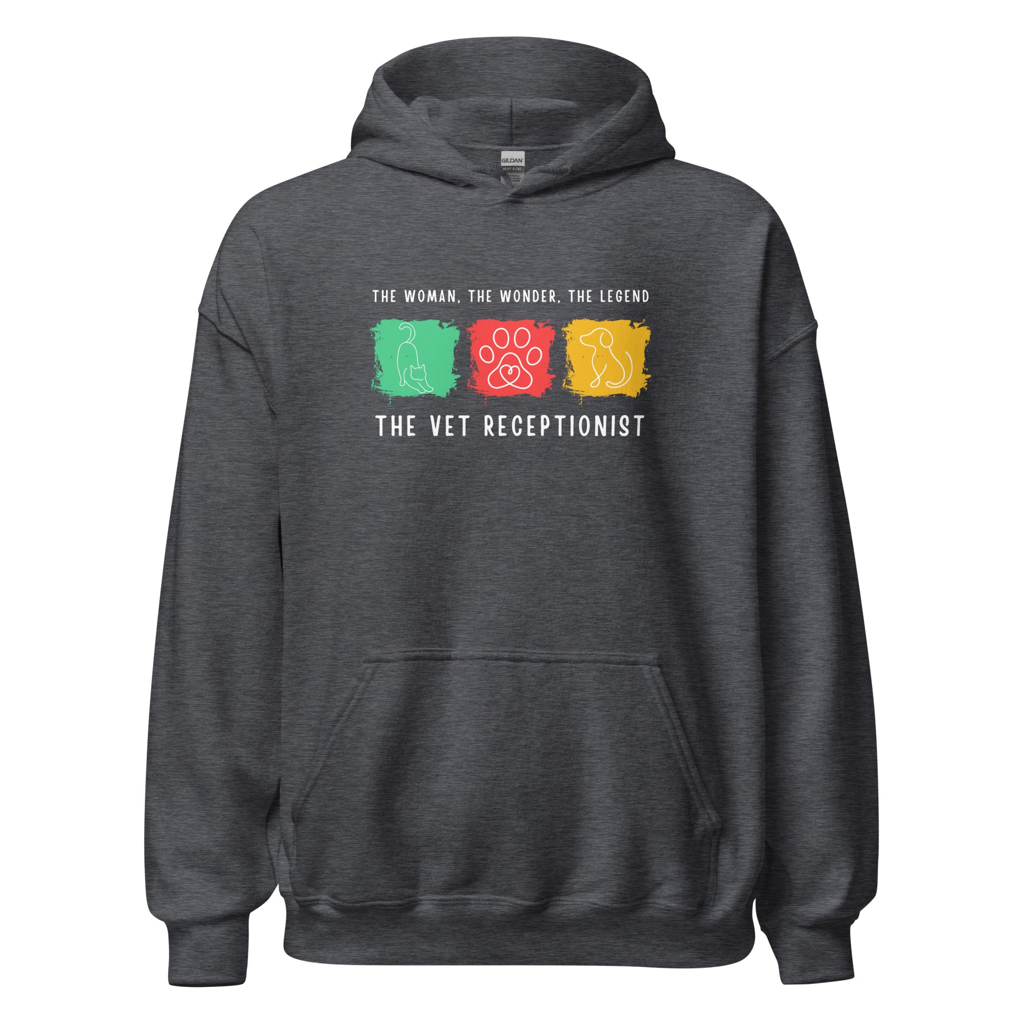 Show how proud you are to be a Vet Receptionist with this The woman, the wonder, the legend - the Vet Receptionist Unisex Hoodie design. Wear this Unisex Hoodie at your place of work and entertain your colleagues with some vet humor. Perfect gift for Employee Appreciation Day, Vet Tech Week, and World Veterinary Day for your Veterinary Staff. This will be your comfiest piece to wear after your scrubs! Unique design for everyone in veterinary medicine who loves their profession!
