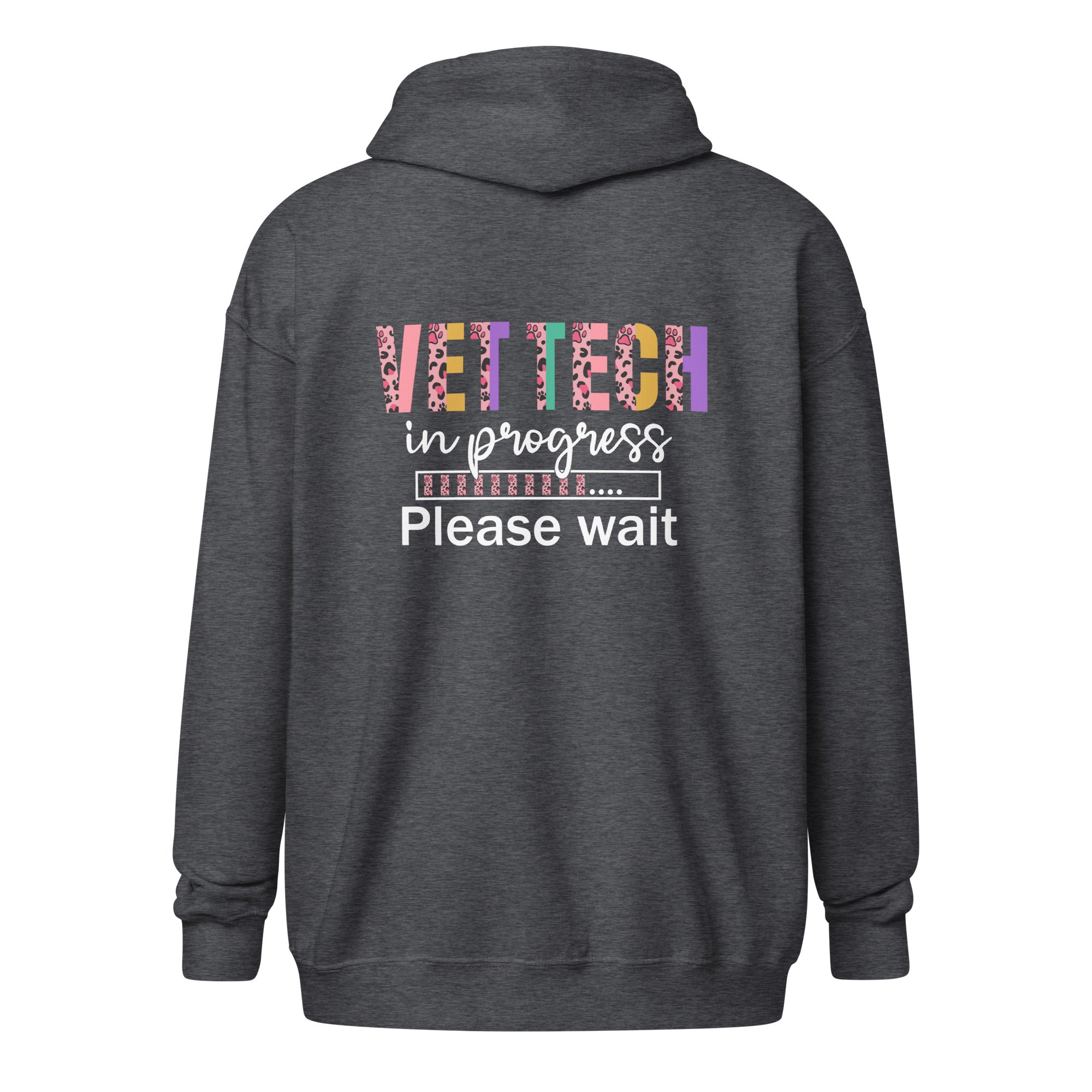 Show how proud you are to be a Vet Tech with this Vet Tech in Progress... Unisex Zip Hoodie design. Wear this unisex zip hoodie at your place of work and entertain your colleagues with some vet humor. Perfect gift for Employee Appreciation Day, Vet Tech Week, World Veterinary Day for your Veterinary Staff. This will be your comfiest piece to wear after your scrubs! Unique design for everyone in veterinary medicine who loves their profession!