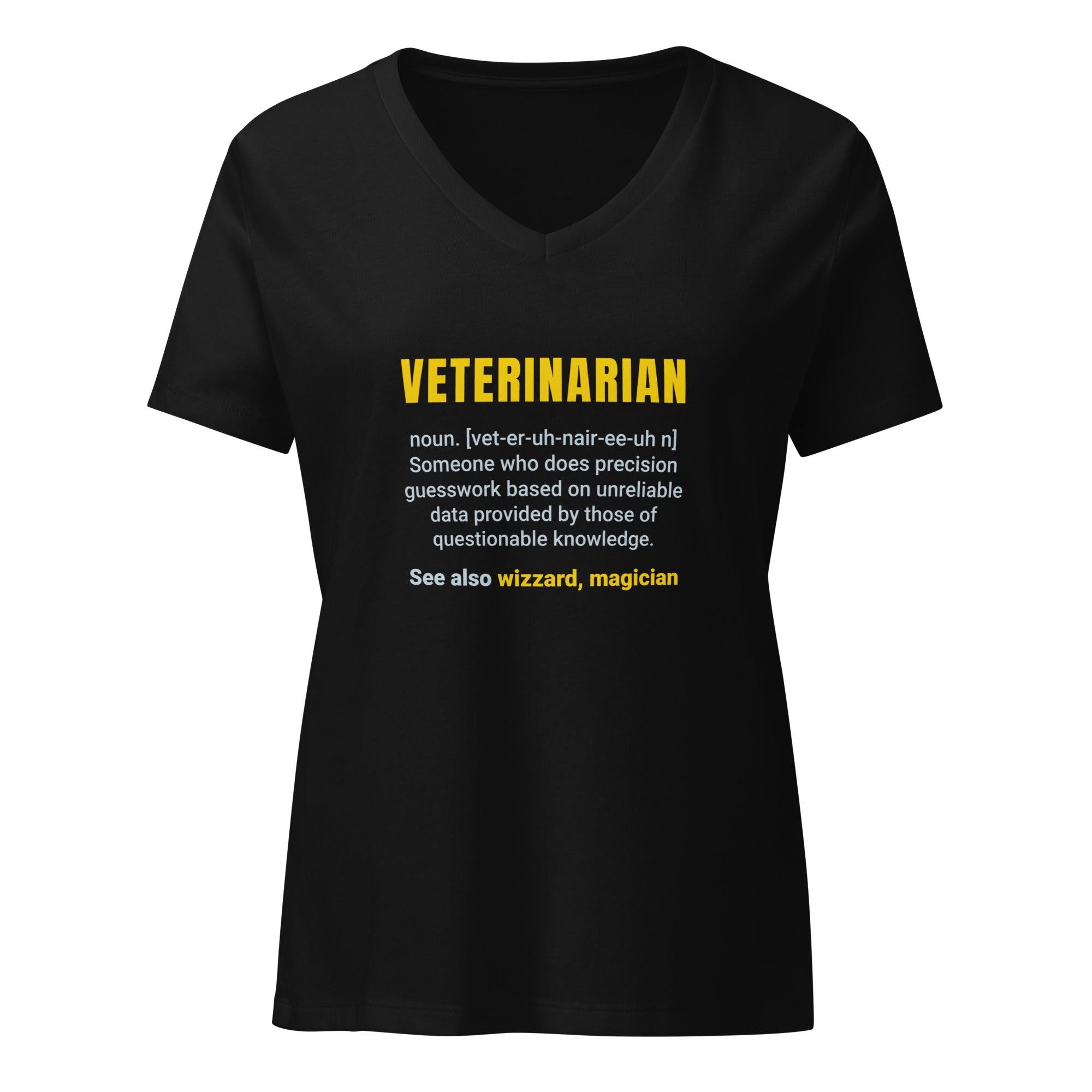 This Veterinarian t-shirt is a great way to show what is your passion. Wear this Veterinarian Definition V-neck t-shirt proudly. Entertain your friends and colleagues with some vet humour or show how much you love animals. Perfect gift for your friends and colleagues. Great for Employee Appreciation Day, Vet Tech Week, and World Veterinary Day to show appreciation to your Veterinary Staff. This will become your favourite piece to wear and a new conversation starter! Contact us and ask for bulk discounts or customization. Unique design for everyone in veterinary medicine who loves their profession! T-shirts are a perfect gift idea for birthdays, Mother's Day, Father's Day, Christmas, or any other special occasion. Find other cool t-shirts for veterinarians, vet techs, veterinary students, vet receptionists, veterinary nurses, veterinary assistants, and anyone involved in the veterinary profession! Please check our size chart and product description before you order. Treat yourself or give it as a gift to someone special. Buy Now!