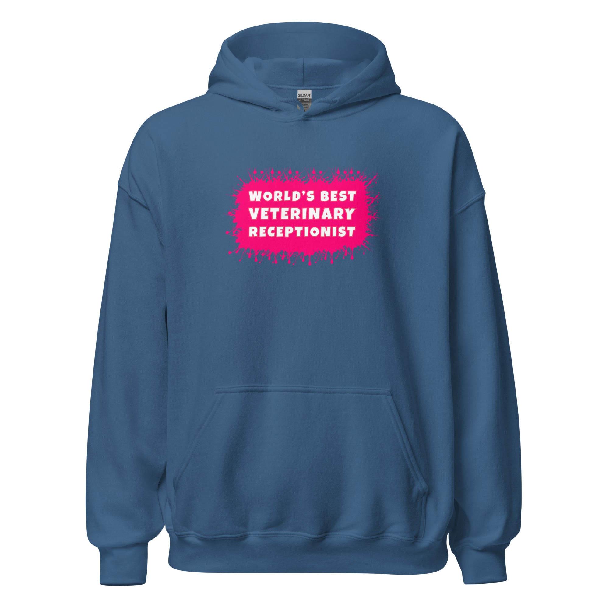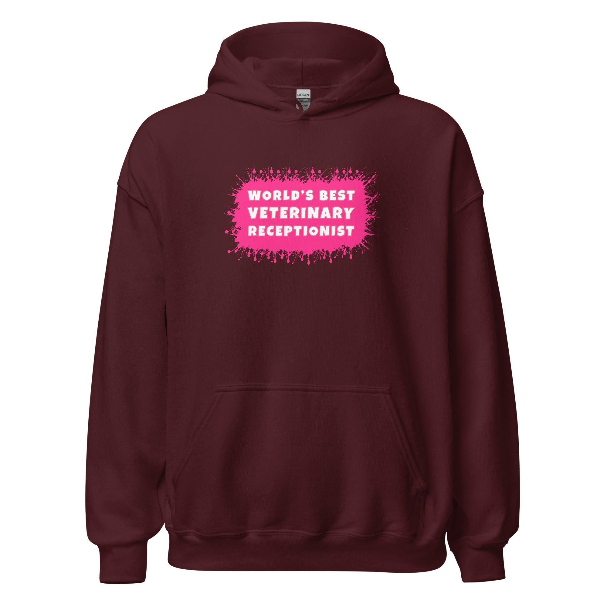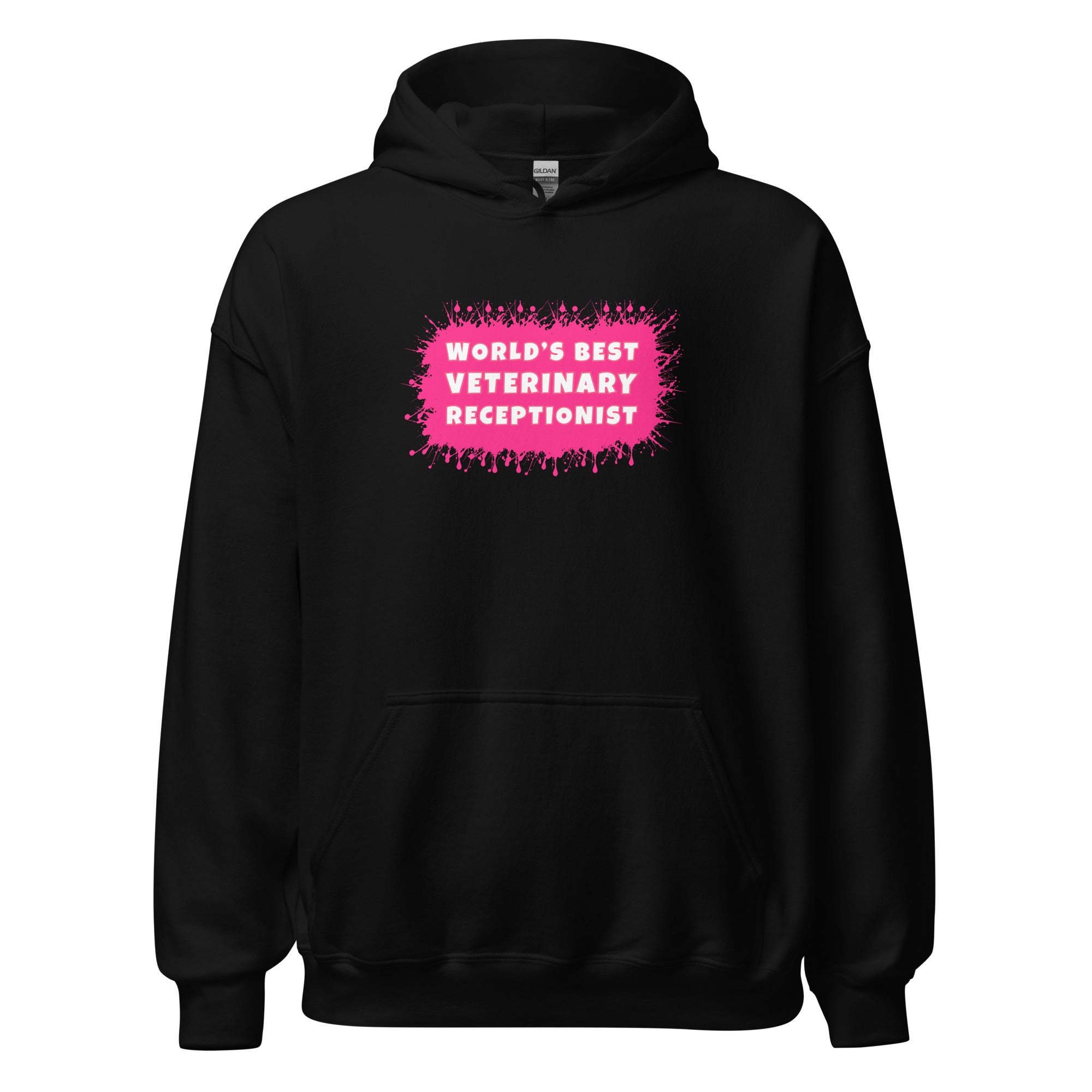 Show how proud you are to be Vet Receptionist with this World's best veterinary receptionist color splash Unisex Hoodie design. Wear this Unisex Hoodie at your place of work and entertain your colleagues with some vet humor. The perfect gift for Employee Appreciation Day, Vet Tech Week, and World Veterinary Day for your Veterinary Staff. This will be your comfiest piece to wear after your scrubs! Unique design for everyone in veterinary medicine who loves their profession!