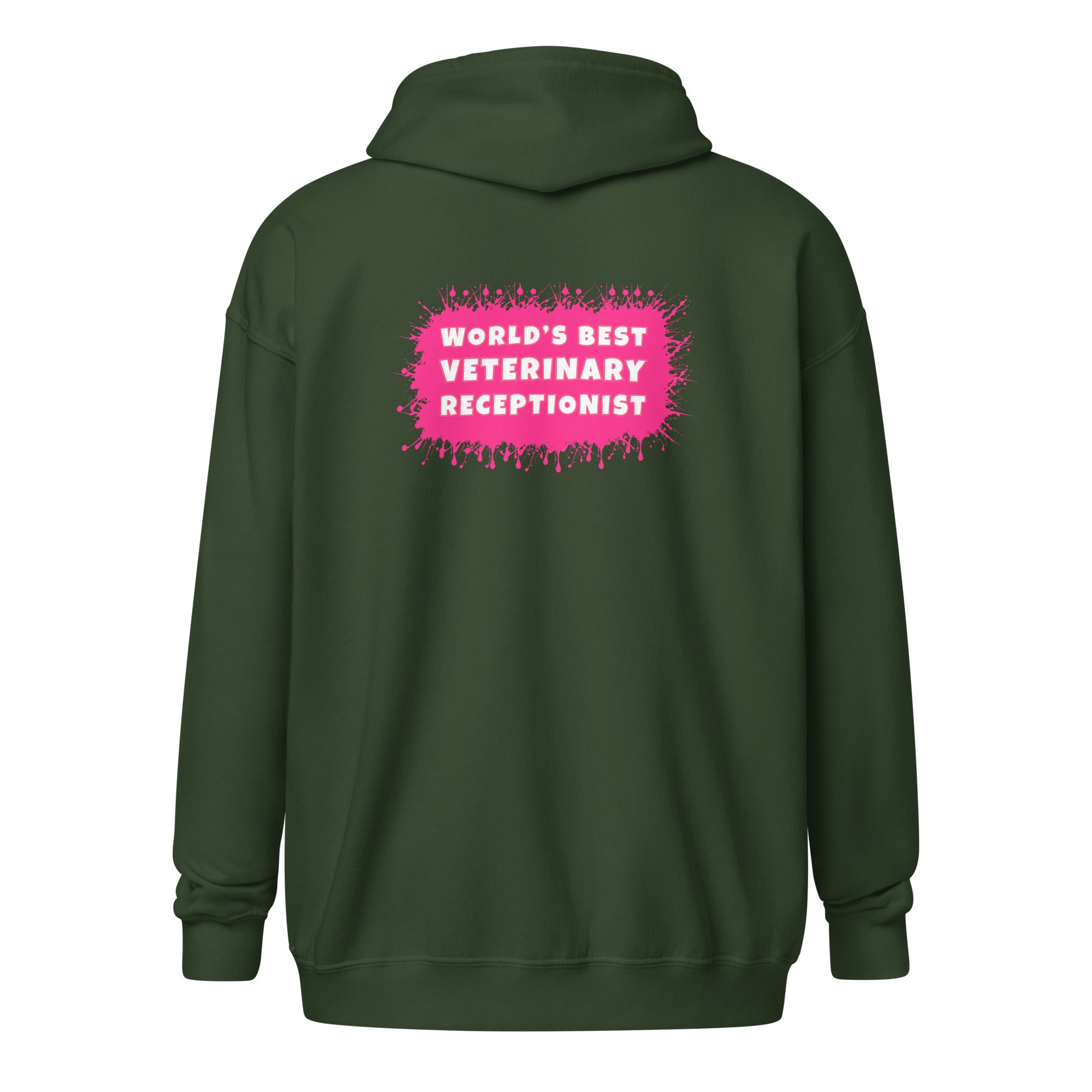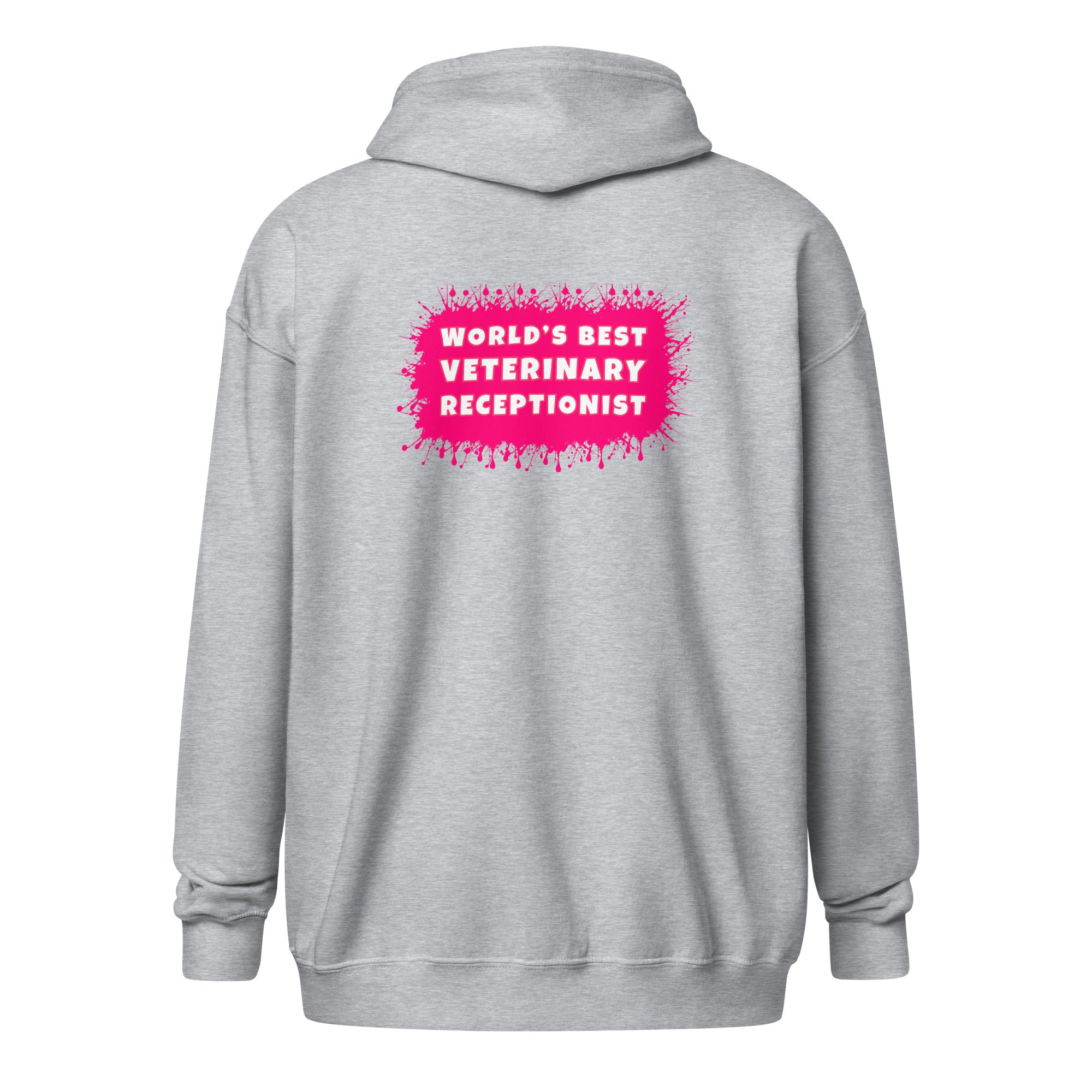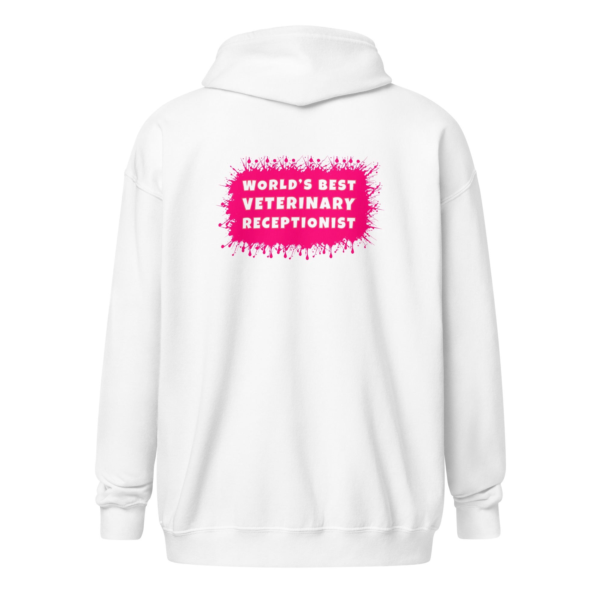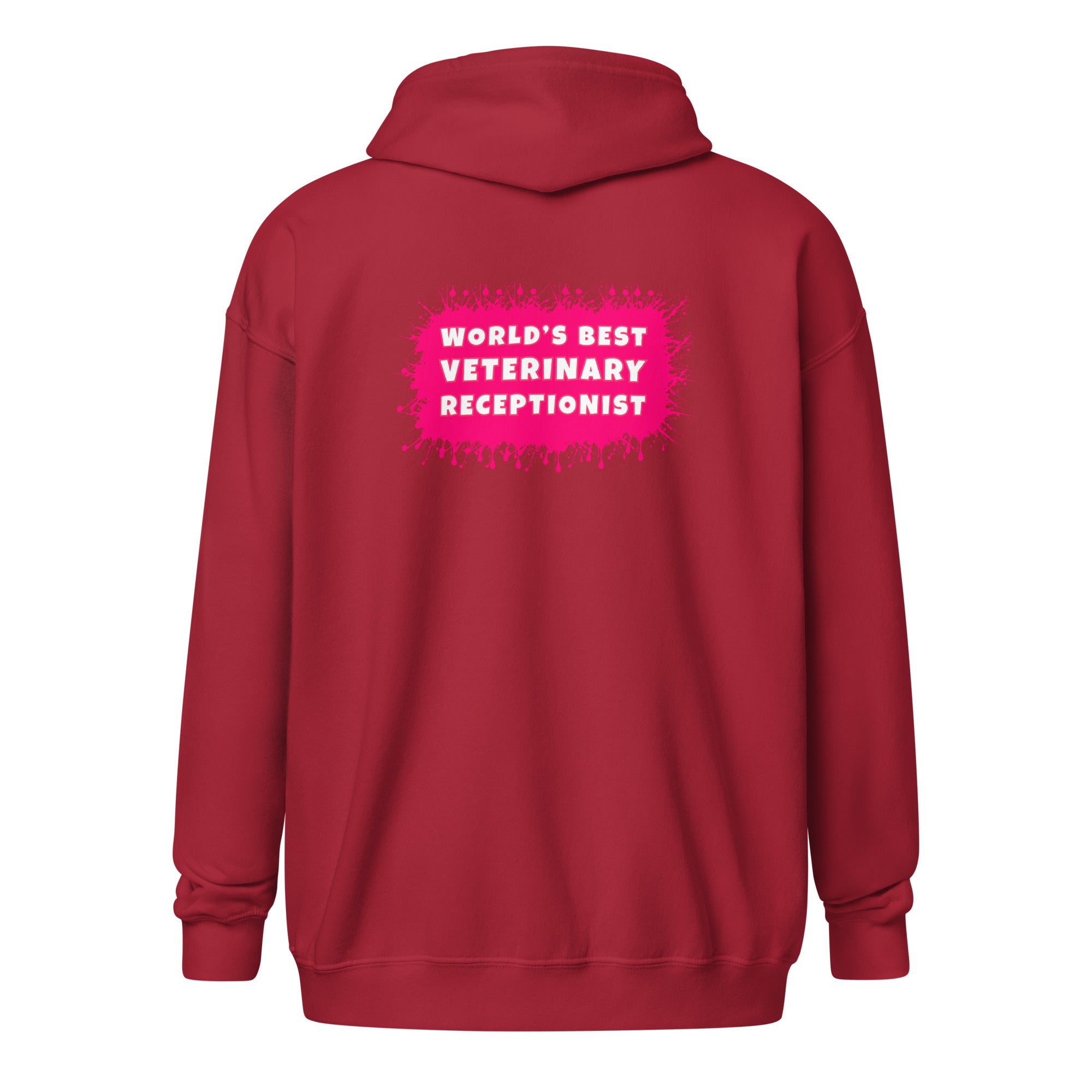 Show how proud you are to be Vet Receptionist with this World's best veterinary receptionist color splash Unisex Zip Hoodie design. Wear this unisex zip hoodie at your workplace and entertain your colleagues with some vet humor. The perfect gift for Employee Appreciation Day, Vet Tech Week, and World Veterinary Day for your Veterinary Staff. This will be your comfiest piece to wear after your scrubs! Unique design for everyone in veterinary medicine who loves their profession!